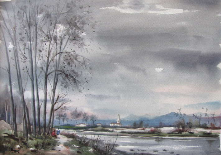 El Ter i Salt al fons. 1950. 33 x 45,5 cm. Aquarel·la sobre paper [Ampliar] |