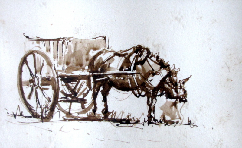 Carro i cavall. Ca. 1952-52. 15 x 23 cm. Nogalina sobre paper |