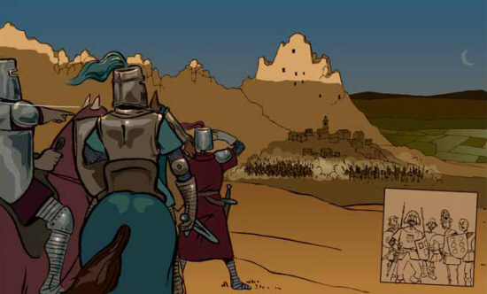 Il·lustració del còmic "El comte Despertaferro. El primer capità dels almogàvers", de Josep M. Ramírez Burgada (Jou), gentilesa de l'autor (www.cartescatalanes.cat)
