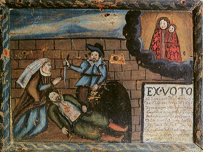 Ex-vot que representa l'assalt d'un bandoler. Viquipèdia - (Ampliar)