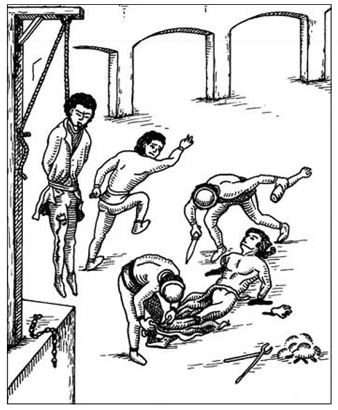 Execució a la forca, 1823. Detall d'un gravat. Viquipèdia.