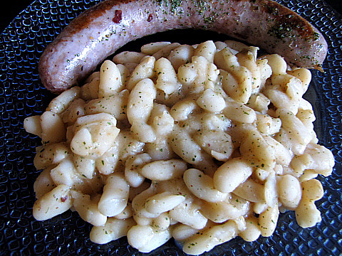 Botifarres dolces amb pomes. Reportatge fotogràfic i article sobre un plat parent d'aquest, però amb notables diferències.