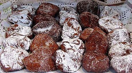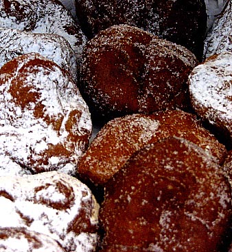 Els bunyols, o brunyols com també són anomenats, són el postre típic dels dies de Setmana Santa. Consisteixen en una massa de pasta, generalment feta d'aigua, llevat i farina, a la que s'afegeixen ous, espècies aromàtiques com matafaluga i saliàndria, i, en algunes receptes, resolis, fregida en oli, i finalment empolsimada amb sucre. Preparada la pasta, es deixa llevar el temps necessari per que adquireixe la consistència precisa. La forma del bunyol és, generalment, arrodonida amb un forat al mig o un clot fondo que no l'arriba a atravessar, encara que qualsevol forma relativament semblant també es pot considerar un bunyol. A les cases, la mainada solia entretenir-se fent ninots amb la pasta, figuretes que també eren fregides i menjades com qualsevol altra porció. ![]() Aquest postres és també ofert a les visites, com present típic d'aquests dies i, en èpoques en que se'n feien a totes les cases, era costum fer-ne partícips els veíns, en justa correspondència als seus lliuraments, establient una mena de competició de qui fa els millors bunyos. Tenint en compte que, de fet, existien tantes receptes com cases, el resultat solia ser molt dubtós. Referint-se a la tradició dels bunyols a Girona, Gibert esmenta que eren poques les families gironines que a començament d'aquesta setmana no fessin bunyols, postres de rigor durant aquells dies, que solien menjar-se en quantitat des del dimecres. Cada familia tenia la seva recepta, com a espècies indispensables hi entraven la saliàndria i la matafaluga, i més tard la gent comprava "polvos de graciosa" per estofar-los. I en tals dies a tota la ciutat se sentia al matí l'olor de l'oli roent, així com a la nit el de la cera cremada. Bibliografia: |