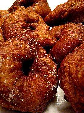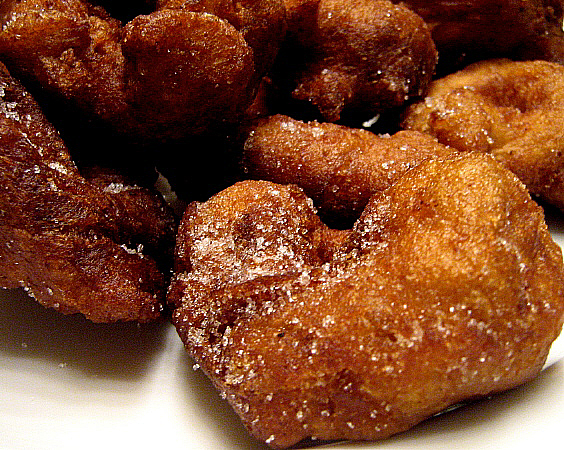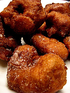 Recepta per a 1 kg de farina. Preparació.Es barreja tot fins aconseguir una massa compacta i sense grumolls. Es reparteix en cassoles de manera que només quedin plenes fins a la meitat de la seva capacitat. Es deixa llevar fins que es dobli el volum inicial (segons la temperatura ambiental, de 2 hores i mitja a 4 hores). Es freixegen en oli de gira-sol abundant. Gentilesa d'Ernest Bisbe Reixach |