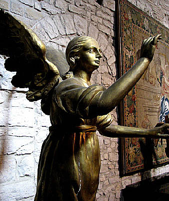 Al fons de la capella s'hi pot veure l'espectacular llit de la Mare de Déu, obra de l'escultor Lluís Bonifas i Masó, de Valls, que va finalitzar el treball sobre el 1775. Aquesta estructura barroca s'instal·lava cada any el 14 d'agost, després de la missa de la vigília, al centre de la Via Sacra, entre el cor i l'altar major, amb l'objectiu que presidís totes les cerimònies de la festivitat de l'Assumpció.
