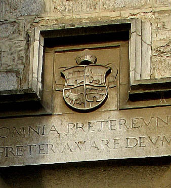 Entre l'arquitrau i la cornisa del frontó corre un fris ornat amb motius vegetals, Tot el conjunt es recolza sobre la columna de cada costat rematada amb la figura d'un àngel a la part superior. Les columnes tenen el fust decorat en la part inferior amb motius vegetals i estriat en la part superior. Els capitels són d'ordre corinti.