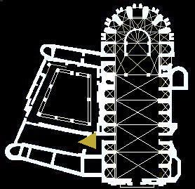 [...] La cavitat es clou amb un arc rebaixat amb dos jocs de volutes que pengen als extrems. La volta està ornada amb artesonat de plafons quadrats que mostren una flor al mig. Als extrems de l'arc apareixen dos busts en relleu dins de sengles medallons.