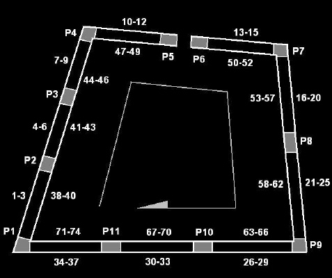 En els següents apartats es documenten de forma individual els capitells, seguint un circuit paral·lel a les agulles del rellotge, des de l'extrem nord-oest dels claustres, en una primera passada per la part interior, cap a les parets de la construcció, i en una segona, la filera externa, la que dóna al jardí del claustre. Els relleus que corresponen als pilars, generalment frisos continuats a les diverses cares, es presenten de forma individualitzada sense diferenciar-ne les cares.