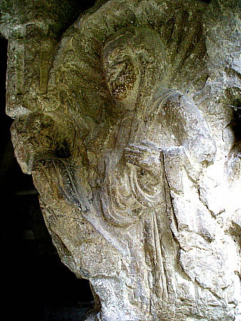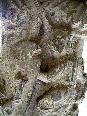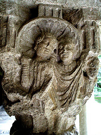 Capitell nº 28Capitell decorat amb escenes de lluita entre dos personatges, en presència d'altres a la part del darrera del capitell. ![]() Completa la decoració, a la part alta del capitell, un conjunt d'elements vegetal compostos per fulles i tiges encintades i sobreposades, que s'encargolen.