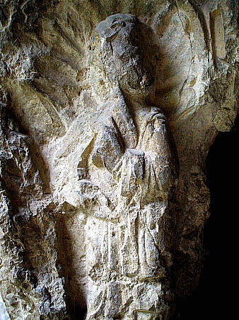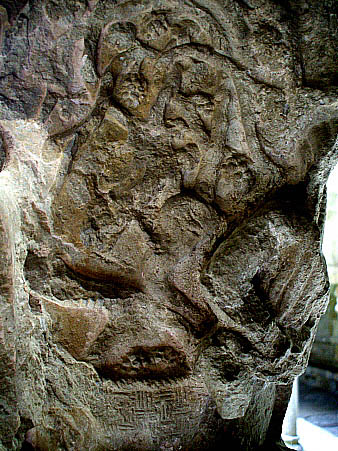Capitell nº 29Capitell decorat amb elements vegetals, amb dos personatges portant una gran tina. La decoració vegetal adquireix l'aspecte d'una vinya, amb el raïm penjant del brancall. ![]() Completa la decoració, a la part alta del capitell, un conjunt d'elements vegetal compostos per fulles i tiges encintades i sobreposades, que s'encargolen.