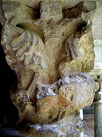 Capitell nº 30Capitell decorat amb escena de cacera del senglar. ![]() A la Porta dels Apòstols de la mateixa Catedral, a la decoració de les mènsules que suportaven les figures, s'hi pot veure una altra escena de cacera del senglar, en aquest cas, perseguit per un gos.