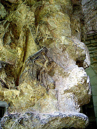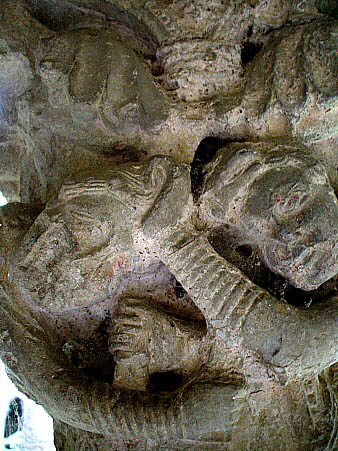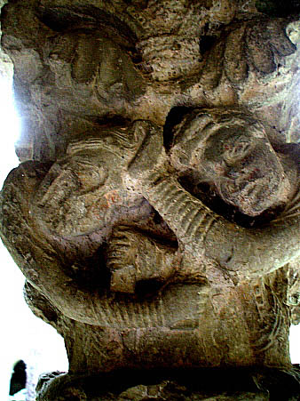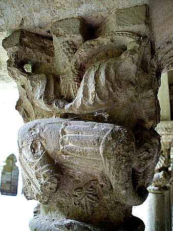 Capitell nº 31Capitell decorat amb escena de discòrdia sobre fons vegetal, compost de fulles i tiges encintades. Dos personatges s'enfronten amb armes, envoltant l'escena la totalitat del capitell. ![]() ![]()