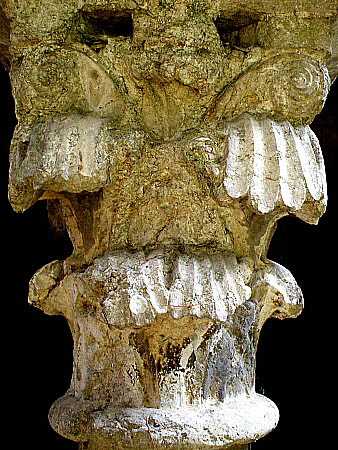Capitell nº 41Capitell de tipus corinti amb decoració de temàtica vegetal, idèntica i continuada a les quatre cares. La composició és similar a la d'altres capitells del mateix claustre, amb un ordre inferior de fulles d'acant, i un de superior amb un conjunt de fulles i tiges encintades i cargolades, que queda rematat a la les quatre cantonades per volutes.