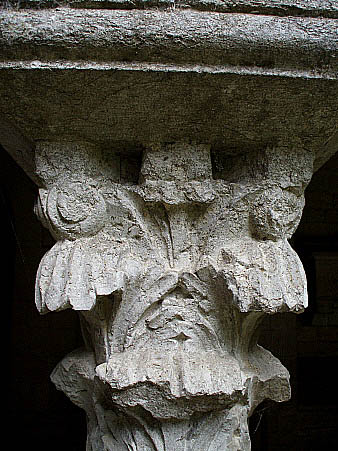 Capitell nº 63Capitell de tipus corinti amb decoració de temàtica vegetal, consistent en fulles d'acant disposada en diversos ordres, i amb volutes a les quatre cantonades superiors.