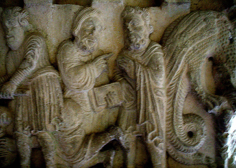 Pilar nº 9 (Capitell a l'extrem, segon fris)A l'extrem nord-est, se sitúa una escena que representa la submissió de dracs per part d'un personatge, formant la frontissa entre la seqüencia d'escenes esmentades i la següent. Bibliografia: