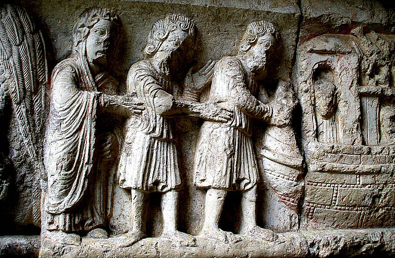![]() Pilar nº 9 (P9), Quart fris Pilar sud-occidental. En aquest fris s'hi representen, precedides de dos capitells, diverses escenes del Gènesi, continuació de la seqüència explicada en el fris anterior. Desenvolupa, en diverses composicions, l'embarcament a l'arca i la fi del diluvi amb l'arribada del colom.