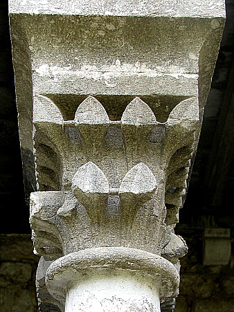 El nº 35 (esquerra) amb decoració vegetal molt estilitzada i senzilla, disposada en dos ordres distribuïts verticalment, similar al capitell nº 5 i capitell nº 17.