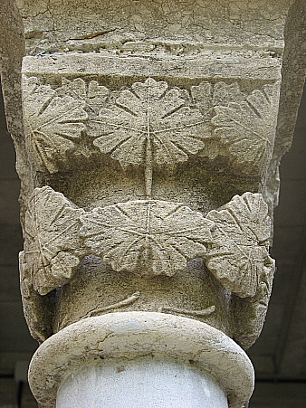 El nē 10 (esquerra) amb temātica vegetal de fulles sobreposades, en dos ordres verticals, ambd decoraciķ i estructura similars al capitell nē 6, capitell nē 8, capitell nē 13 i capitell nē 15.