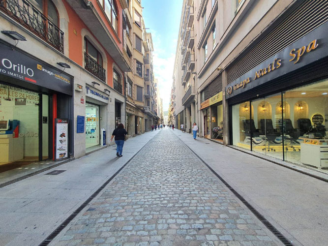 Orientada d'est a oest, és la via que va del pont de Pedra a la Gran Via de Jaume I. Aquest final de carrer era on s'alçava la muralla del Mercadal i on hi havia el portal d'Àlvarez.