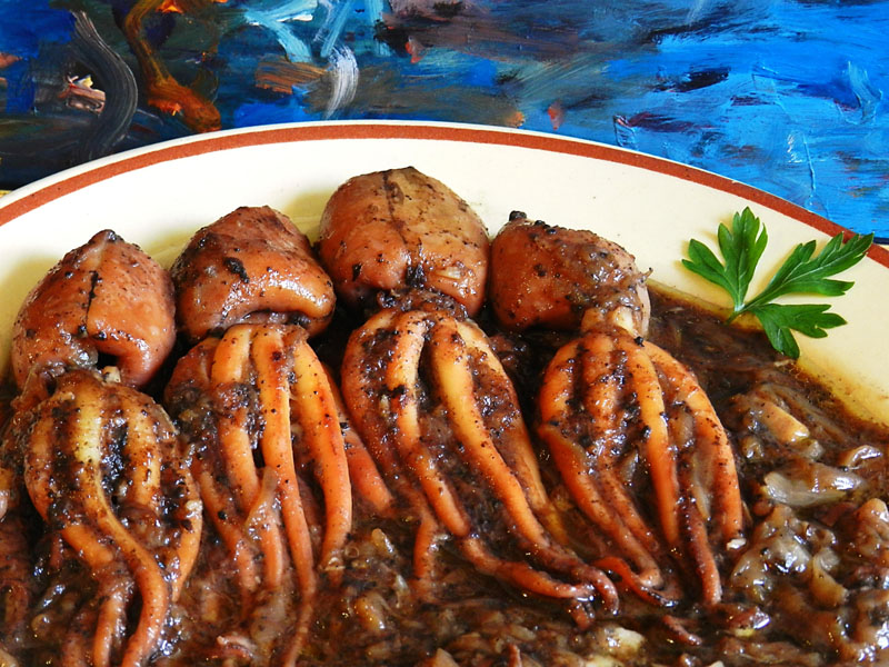 També podem afegir-hi una picada, o bé una picada amb una presa de xocolata, que tant amb els pops com amb els calamars s’hi avé molt.