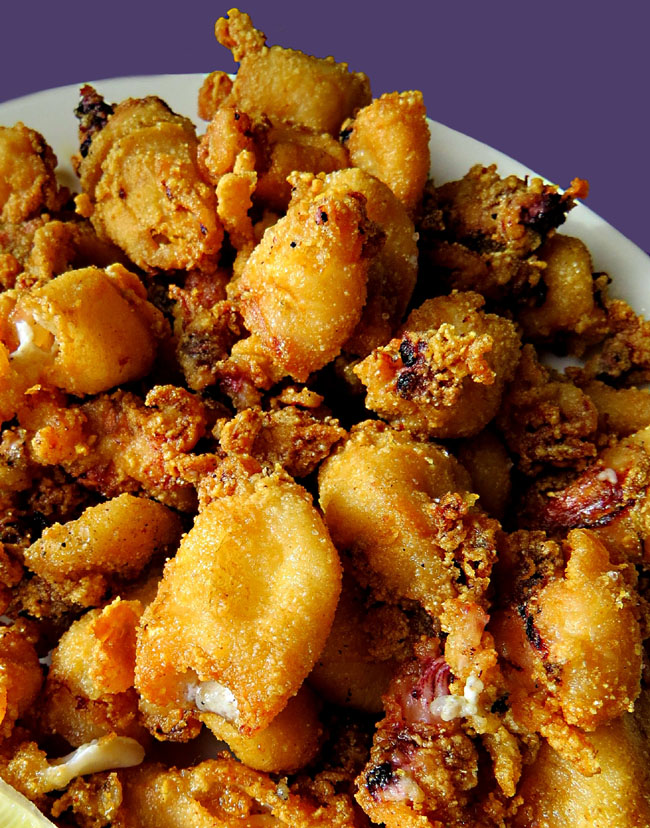 Calamars a la romana i brunyols de bacallà. Foto Fèlix Xunclà.