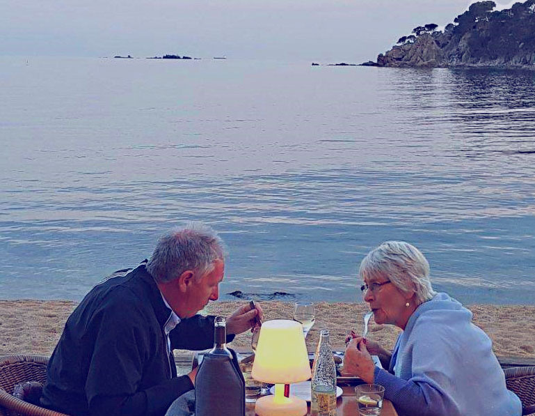 Menjant a la terrassa de Can Gelpí.