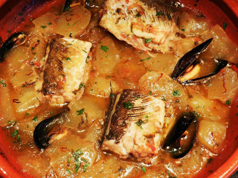 Amb el fumet fet, colat i ben calent, l’all i oli de fetge a punt, i els filets d’escórpora nets d’espines ja podem començar a fer el suquet pròpiament dit (Foto).
