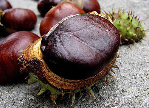 Castanyer d'Índies (Aesculus)![]() El fruit és una càpsula, la castanya, que s'obre en dues o tres parts per alliberar les llavors que conté a l'interior, generalment una i a vegades dues. La coberta d'aquests fruits, espinosa, varia d'una coloració verde a marró, segons les especies. Les llavors, d'entre 4 i 8 cm, presenten una coberta de color entre marró clar brillant a marró fosc amb una notable marca clara o blanquinosa a la base. ![]() El castanyer d'Indies, malgrat el seu nom, és originari de la zona dels Balcans, Grècia, Albània, Bulgaria. Es diu que Clusio, el 1576, va comprar-ne llavor a Constantinoble, i les va sembrar a Viena des d'on es va distribuir a la resta d'Europa. El nom en anglès de l'arbre, horse chestnut, castanyer de cavall, respon exactament a la denominació cientifica Hippocastanum; alguns autors consideren que el nom deu provenir del fet que, en algunes èpoques, es devia emprar com ferratge pels cavalls. ![]() |