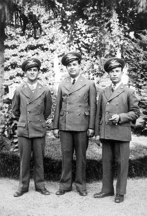(Ampliar) - Retrat de tres funcionaris de Correus amb uniforme als jardins de la Reina Victòria, a la Devesa. 1933. Autor desconegut. CRDI - Ajuntament de Girona.