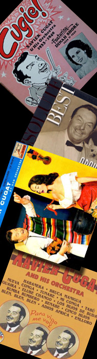 Xavier Cugat va complir extenses etapes de gravació de discs amb segells com Columbia i RCA Victor. Amb el primer va gravar els cèlebres Mambo at the Waldorf, Merengue! by Cugat!, Cugat Favorite Rhumba, i altres, tots amb dotze temes, i amb el segell Victor va gravar el disc Cugat in Spain entre d'altres.