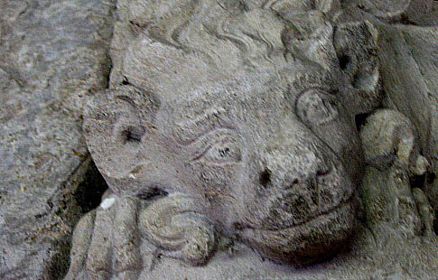 Detalls de caps de lleons que sostenen un sarcòfag. ![]() ![]() ![]() ![]()
