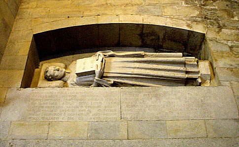 Damunt la porta del vestíbul d'entrada al claustre s'hi troba la tomba amb estàtua jacent del sagristà major, arquebisbe electe de Tarragona (1234-1239) i conqueridor d'Eivissa i Formentera el 8 d'agost de 1235 per al rei Jaume I, Guillem de Montgrí, mort el 1273. L'escultura va ser acabada en vida de Guillem, i és atribuïda al mestre Bartomeu de Girona. Al centre del casc històric d'Eivissa, al costat de l'Ajuntament, hi ha una rèplica del sepulcre donada pel consistori gironí a la dècada dels setanta.