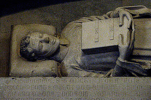 Sota l'estàtua jacent hi ha un llarg epitafi, que Barrachina (op. cit.) indica que és estrany literàriament: tres versos en primera persona i la resta en tercera, que és un catàleg de mèrits del difunt. El sepulcre, procedent de la catedral romànica, va ser traslladat a la seva ubicació actual el 1711, tot i que segurament ja havia estat mogut anteriorment.
