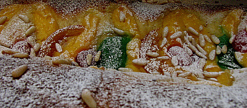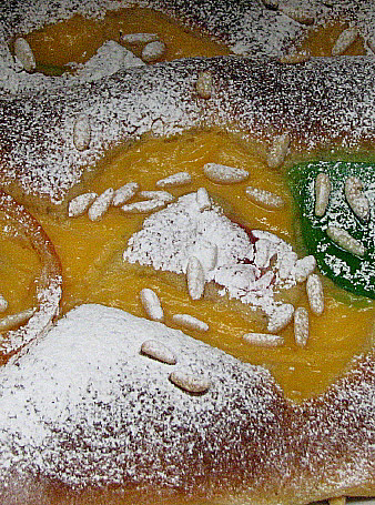 Postre típic durant la revetlla de Sant Joan, la seva variant més clàssica és la de crema decorada amb fruita confitada. Gibert, a l'obra esmentada a la bibliografia, indica que, antigament, a la nit era de rigor menjar coques ensucrades que venien a les confiteries i fleques. Després de sopar la gent es llançava al carrer fins ben entrada la matinada. Els cafès i hostals, il·luminaven exteriorment l'establiment a "la veneciana" amb fanals i "barrabombes"; eren freqüentats fins molt tard, despatxaven bon nombre de ressopons i la gresca durava fins que clarejava. A la sortida dels balls que s'organitzaven, la gent tenia per costum anar als pous d'aigua picant, de Pedret, a menjar coques fins a les set o les vuit del matí, hora en què, ja cansada i endormiscada, se n'anava a dormir. Fou després de 1890 que s'inicià el costum d'anar a les fonts dels contorns de la ciutat, sobretot a la de la Pólvora i a la del Ferro. ![]() Per a composició de la massa de la coca són necessaris els següents ingredients: 300 g de farina, 50 g de llard, 60 g de sucre, 35 g de llevat de París, 2 ous, un polsim de sal, 75 ml. de llet, 100 g farina d'admetlla i la pell d'una llimona ratllada. Per a la crema pastissera seran necessaris 5 rovells d'ou, 125 g de sucre, 50 g de farina de panís (maizena), 625 ml. de llet, una branca de canyella i una pell de llimona. Per elaborar la crema pastissera es posa a bullir la llet amb la pell de llimona i la branca de canyella. Mentre, es baten els rovells d'ou amb el sucre; un cop ben batut, s'afegeix, poc a poc, la farina de panís. Incorporar la llet, prèviament colada, i es deixa refredar. Barrejar bé tots els ingredients, tornar a colar i posar al foc, on es manté sense deixar de remenar, fins que espessi. Posar la crema en una safata i deixar refredar. ![]() Per elaborar la coca, desfer la llevadura amb la llet tèbia i reservar-ho. En un bol, batre els ous amb el sucre i afegir la sal, la pell de llimona ratllada i la mantega, fins obtenir una textura de pomada. Incorporar a la barreja la llevadura amb la llet, la farina d'admetlla i, poc a poc, la farina, preferiblement amb un colador per evitar els grumolls i obtenir una massa més flonja. Seguidament, anar incorporant farina fins que la massa no s'enganxi als dits. Treballar la massa amb les mans, i fer-ne una bola. Deixar reposar durant 15 minuts en un bol, tapada amb un drap. Mentre, untar amb oli o mantega una llauna de forn. Dividir la massa en dues porcions, i estirar-ne una amb el corró, donant-li forma ovalada. Posar-la a la llauna. Repartir la crema pel damunt de la massa. En altres variants es pot farcir amb cabell d'àngel, xocolata, massapà, etc. Estirar amb el corró l'altra porció de massa, posar-la al damunt de la base que es té a la llauna i tancar la coca. Per a que quedi ban tancada es poden pintar les vores amb clara d'ou. Deixar reposar la coca durant 45 minuts tapada amb un drap humit; passat aquest temps, es pinta la coca amb ou batut i es decora amb fruites confitades, pinyons o ametlles filetejades. Es posa la coca al forn, que prèviament s'haura escalfat, durant 30 minuts, a una temperatura d'entre 160/170º i es courà fins que estigui daurada. L'últim toc serà decorar amb una mica de sucre llustre pel damunt. Bibliografia: |