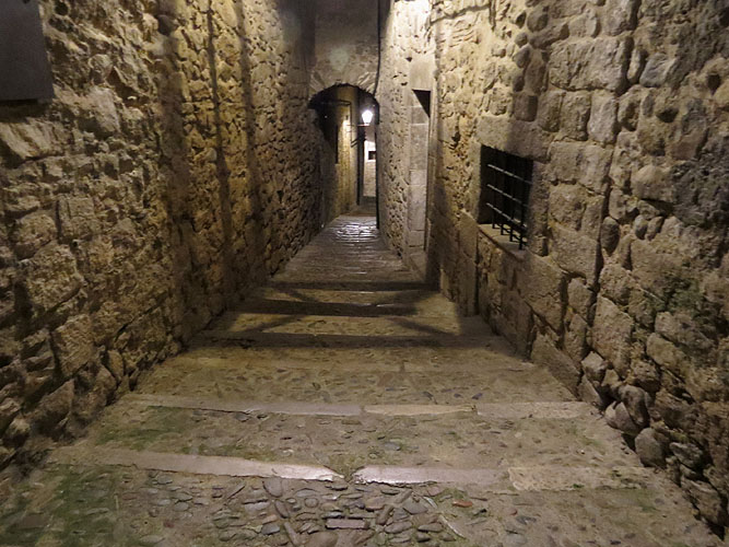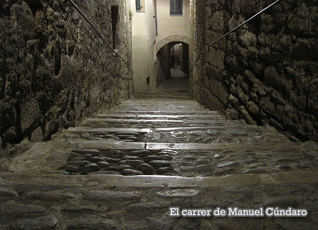 És una travessia escalonada, a mà dreta del carrer de la Força, que enllaça amb la Pujada de la Catedral. Conjuntament amb els carrerons de Sant Llorenç i d'Hernández, aquest tancat pels dos extrems, comuniquen el límit superior del Call jueu, els carrers de Claveria i del doctor Oliva i Prat, amb el carrer de la Força. L'actual carrer té el seu origen en el traçat romà de la ciutat.