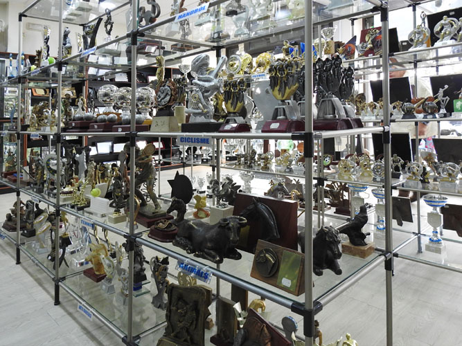 Arts i metalls Carmaniu va ser un dels primers negocis especialitzats en trofeus d'Europa. L'artista i artesà del metall Narcís Carmaniu va tenir un gran reconeixement per les seves obres on va ser guardonat amb diversos premis i distincions d'art. El seu fill Josep Ma. Carmaniu està al capdavant de l'empresa i continua ampliant el negoci. Posteriorment, el net del fundador regenta el negoci amb la tecnologia més avançada del moment. Paral·lelament, ha fundat també Trofeus Girona, on fabriquen trofeus, copes, plaques, medalles, clauers, pins, reclams publicitaris, objectes de regal, condecoracions, banderes i realitzen restauracions, gravacions de tot tipus i impressions digitals a tot color.