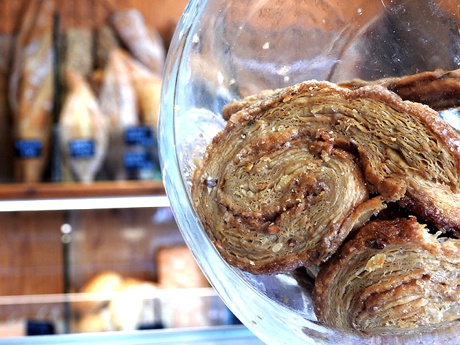 Durant la Guerra Civil els soldats republicans que fugien cap a l'exili van cremar la fleca sencera, deixant-la totalment destruïda. A finals de l'any 1939, els propietaris van encarregar a Josep Maria Busquets Mollera la reconstrucció de la fleca. Des de llavors, la botiga es manté pràcticament intacta. Com a trets característics del local, destaca la façana de ferro forjat, les típiques rajoles de La Bisbal, els àngels de Rafael Masó a banda i banda de la porta de l'obrador, una reproducció d'un relleu del Bon Pastor i la còpia d'un dels sarcòfags que es troben al presbiteri de l'església de Sant Feliu de Girona. L'any 2018 la Maria i en Xevi acullen el negoci recuperant el nom antic i respectant la decoració de la fleca.