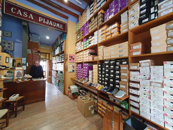 Quan Vicens Pijaume Soler va obrir Casa Pijaume l'any 1875, hi venien esclops, cordes i cordills. La seva especialitat eren les espardenyes de sola de cànem, i en un sol dia en podien vendre centenars a pagesos i treballadors del camp. El seu fill, Ramon Pijaume Vives, va ampliar el negoci amb material de pesca, mentre veia com la moda i els nous materials desbancaven les espardenyes. Però els que més van modernitzar el negoci, amb les noves soles de goma i esportives, van ser les dues generacions que vindrien, amb Vicens Pijaume Juanola i Vicens Pijaume Sureda. S'hi poden trobar espardenyes clàssiques de veta, i també tota mena de calçat adaptat als nous temps, sabates especials per a plantilles i peus delicats i tota mena de calçat per a home i dona (Clarks, Toni Pons, Pikolinos, Aerosoles, Chiruques, etc).