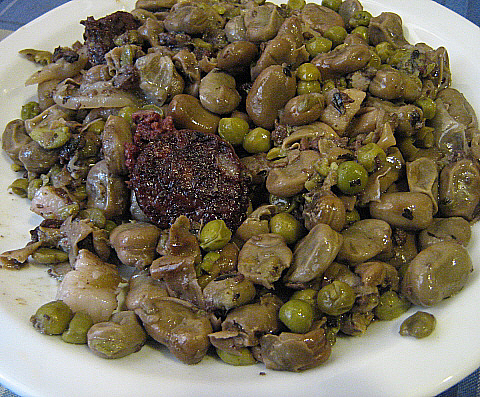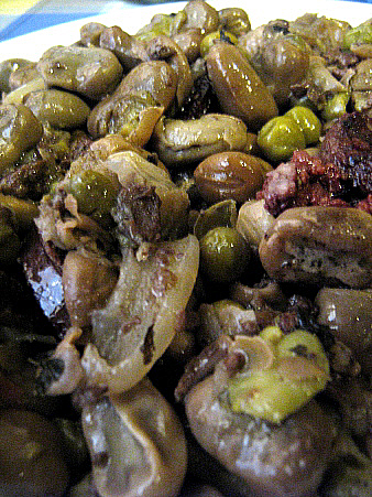 Les faves ofegades, o a la catalana.L'escriptor Manuel Vázquez Montalbán considerava que aquest plat era un dels pilars gastronòmics de la nació. Aquest plat ja està documentat a l'Edat Mitjana, quan les estacions agrícoles forçaven i governaven la variació alimentària de la població; així, es conserven receptes dels segles XIV i XV com "ffaves tendes ab let de amelles" o bé com "ffava ffressa blancha". Els mestres de cuina de principis del segle XX condimentaren més els plats preparats amb faves, donant lloc a l'actual preparació. Miralpeix i Riera, al treball referenciat a la bibliografia, consideren que les faves a la catalana podria haver derivat d'una recepta del segle XVIII en què s'explica com es fan les faves: "Cou cancelada, y fossa sia tiri las fabas netas ab sal posa-las al foch violentat, tapa-las be dexa-las courer mitja hora tomba-las 4, ó 5 vegades, tiri pebre y menta trinxada, luego las rullas de cancelada, botifarra y carxofas fregidas antes". ![]() Els ingredients.Amb moltes variants en allò que es refereix als components del plat, habitualment s'hi sol posar faves desgranades, cansalada viada tallada a daus, botifarra negra, cebes tendres trinxades, alls tendres trinxats, menta fresca, una cabeça d'alls, oli, sal, pebre i aigua. Opcionalment, s'hi afegeix llorer i costelló de porc i una variant molt freqüent consisteix en afegir-hi pèsols. ![]() La preparació.En una olla es rosseja la cansalada, els alls i la ceba. Un cop sofregits s'hi afegeixen les faves, les herbes i la botifarra negra, una tassa d’aigua, es i salpebre. Es tapa i es deixa a foc fluix fins que les faves estiguin cuites. Variacions: es pot fer amb pèsols a més de faves (pèsols i faves ofegats) i també s’hi pot posar marduix a més de la menta. Al final de la cocció s’hi pot tirar un raig d’anís o mitja copeta de barreja (moscatell i aiguardent). |
