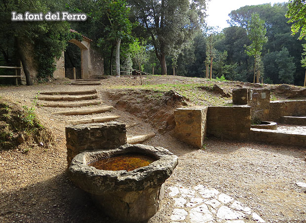 La font del Ferro és un paratge natural al que s'accedeix mitjançant un pont que travessa el torrent Estela i d'una portalada de pedra i obra vista, amb arc rebaixat. La font és inclosa a l'Inventari del Patrimoni Arquitectònic de Catalunya. La situació de la font va obligar a desviar el torrent i ara passa per sota del pont d'accés al recinte. En la restauració de l'indret duta a terme per l'Ajuntament de Girona el 1980, es va utillar l'espai amb diverses barbacoes fixes, on els excursionistes podien preparar-s'hi els àpats utilitzant aquestes instal·lacions i les taules i bancs que hi va disposar. L'any 2021, en trobar-se dins l’espai natural de les Gavarres, es varen retirar les barbacoes per motius de seguretat, convertint l'espai en zona de pícnic amb només taules, bancs i papereres.