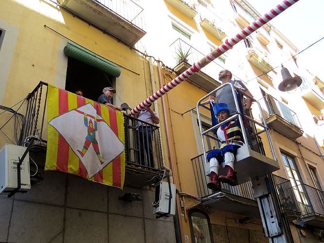 Reportatge fotogràfic de la penjada del Tarlà al carrer de l'Argenteria, i primeres cabrioles. 21 fotografies. |