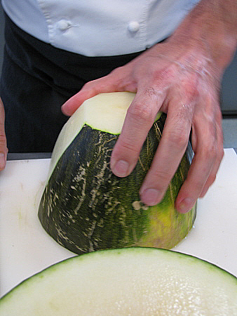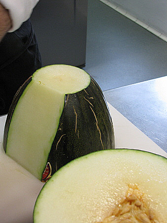 Crema d'alvocat i llima amb fonoll, menta i meló