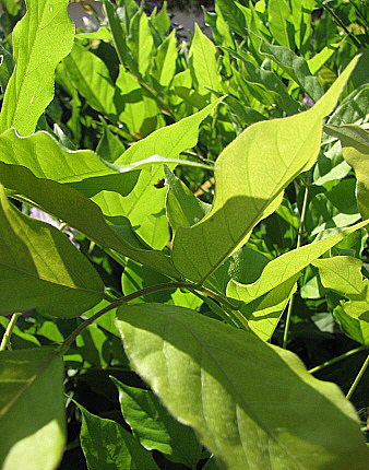 El follatge de la Glicina està format per fulles compostes, caduques, de color verde que oscil·la de tonalitats més o menys clares a un verd fosc, brillants, pinnades, d'entre 10 i 30 cms. de longitut, amb de 9 a 13 folíols oblongs de 2 a 6 cms de llarg. Els fruits són beines que per ingestió esdevenen verinoses, de color marronós, avellutades, d'entre 5 i 10 cms de longitut, que maduren a l'estiu i persisteixen fins l'hivern. Sol créixer en terres humits i a ple sol. Pot arribar a viure més de cinquanta anys.
