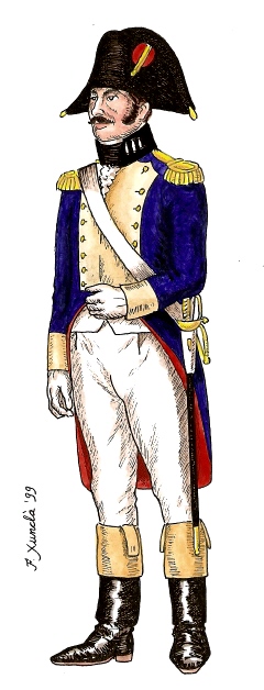 Estats majors de plaça. Governador de Plaça. Dibuix de Fèlix Xunclà. Basat en "Uniformes Militares Españoles. El Ejército y la Armada en 1808", de José Maria Bueno, Málaga, 1982.