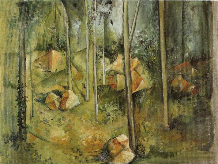 (Ampliar) - Pedrera a Girona. Santi Roca D. Costa. Ca. 1969. Oli sobre tela. Col·lecció de l'artista. Els picapedrers.