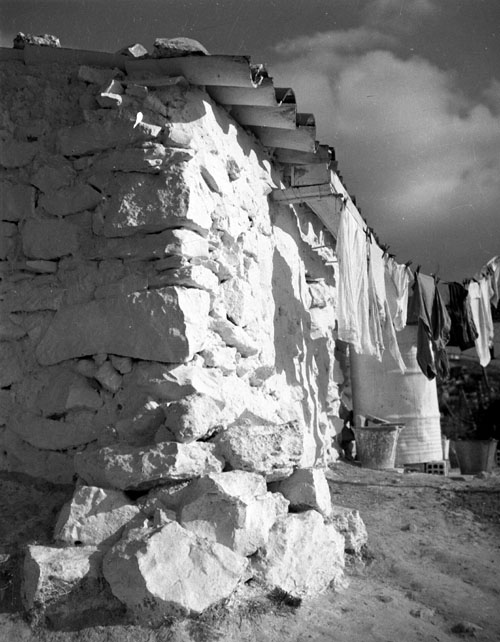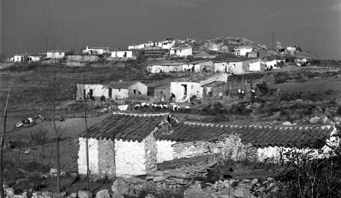 (Ampliar) - Barraquisme a les Pedreres. Detall d'una barraca. 1959. Autor desconegut. CRDI - Ajuntament de Girona.