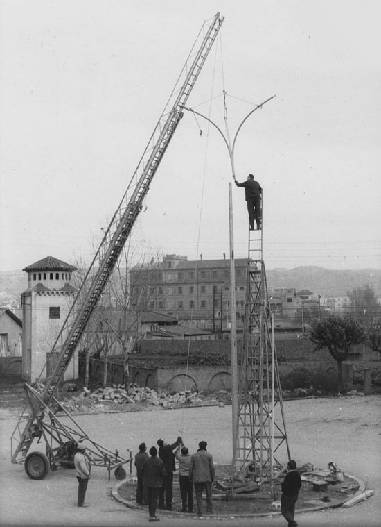 (Ampliar) - Obres d'enllumenat dels carrers del barri de Sant Narcís. Octubre 1963. Narcís Grosset Oliver. CRDI - Ajunament de Girona.