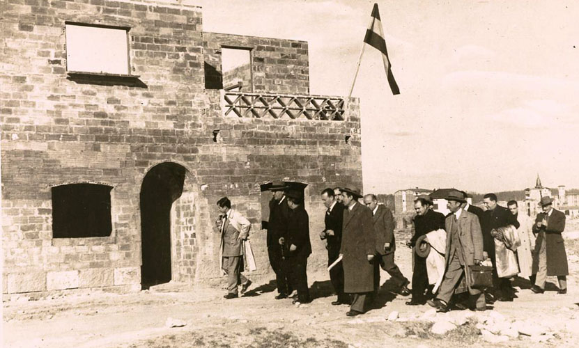 (Ampliar) - Visita de les autoritats en el primer any de construcció dels habitatges del Grup Sant Narcís. 16 d'octubre 1949. Narcís Grosset Oliver. CRDI - Ajuntament de Girona.
