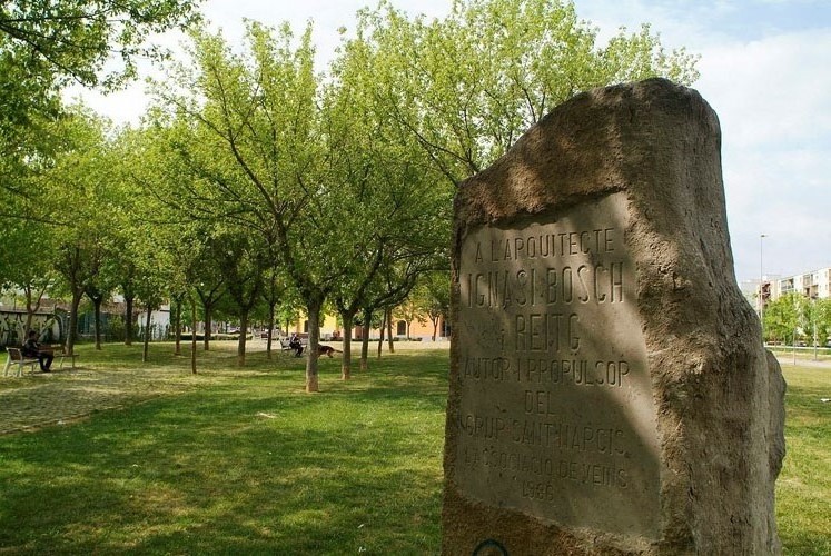 (Ampliar) - Monòlit a l'arquitecte Ignasi Bosch i Reig al barri de Sant Narcís. 2006. Jordi S. Carrera. CRDI - Ajuntament de Girona. |