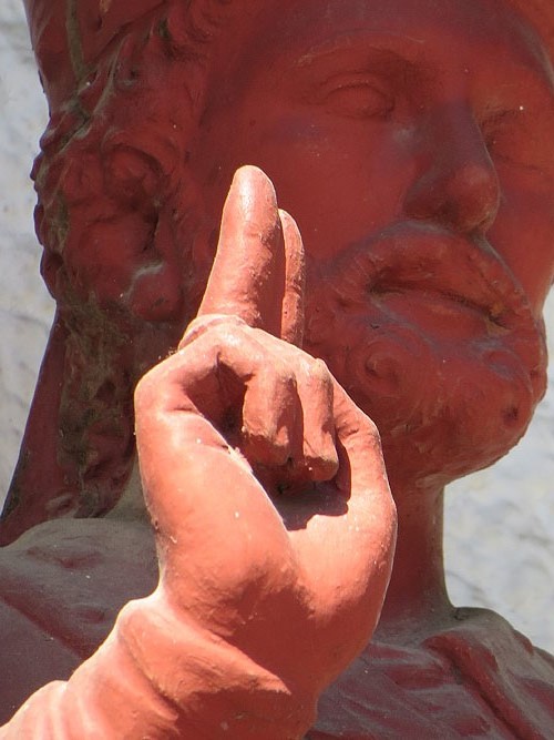 (Ampliar) - Detall de la figura de Sant Narcís que presideix la façana de l'església. 1951. Procedent de Ceràmiques Marcó de Quart.